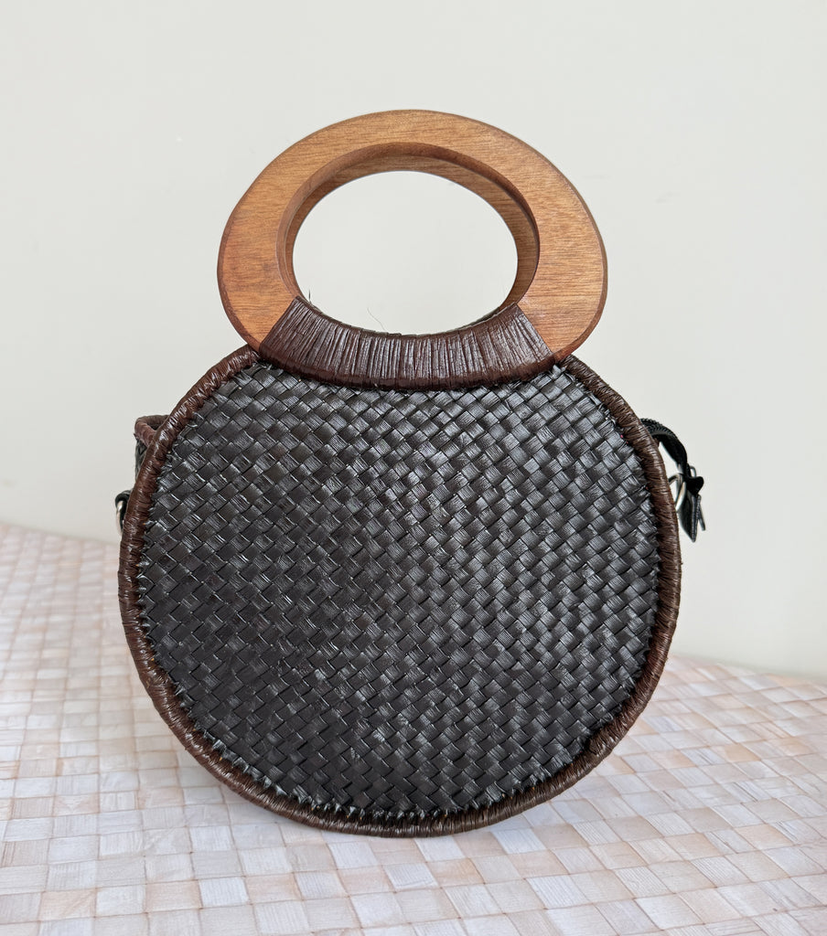 Small in size but perfectly spacious for your essentials, this beautifully woven round bag is your go-to for special occasions. Its elegant design makes a bold statement, adding a touch of sophistication to any outfit. Step out in style and let your bag do the talking.