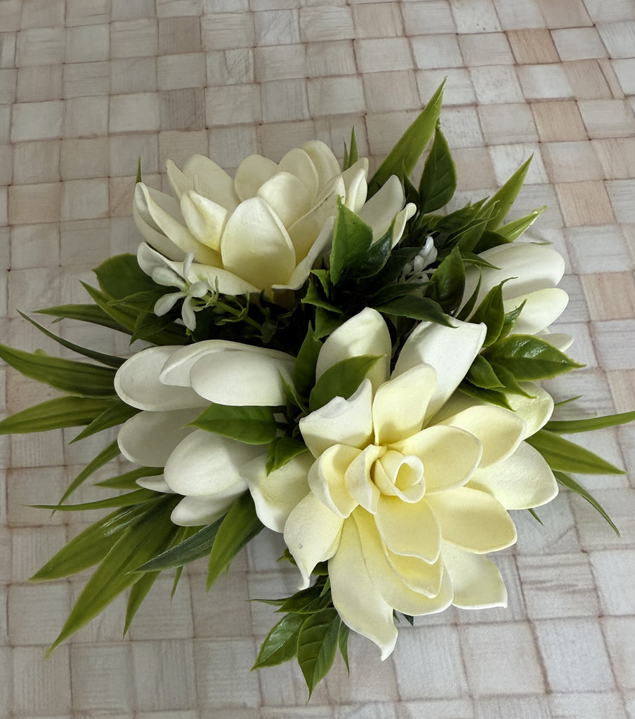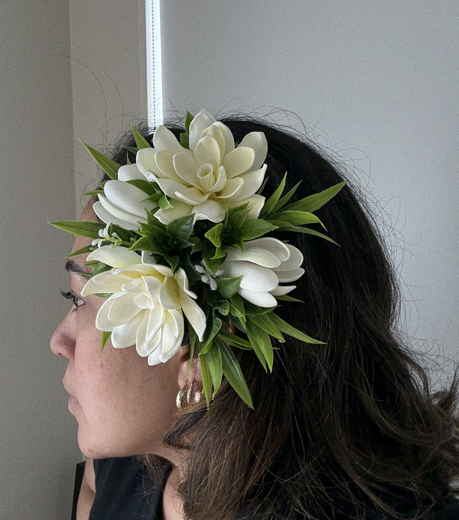 A one-of-a-kind Gardenia Tiare hairpiece, crafted to capture the soft beauty of island blooms. Elegant, full, and timeless — the perfect finishing touch for any queen who loves that classic Pasifika glow. 🌺🤍